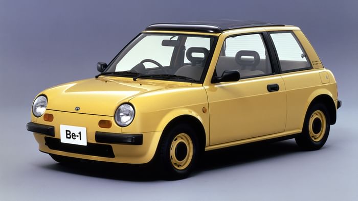 The ‘Cosiness-oriented car’, that’s Nissan’s term, not mine, went into production in 1987. Even in an age of technological wizardry and innovation, the Japanese took the Be-1 to their hearts, to the extent that demand outstripped the planned supply of 10,000 cars. Buyers could select one of four colours: Pumpkin Yellow, Tomato Red, Onion White and Hydrangea Blue. A lottery system was used to allocate orders, with Nissan launching a canvas-top version to keep its customers satisfied. It, too, sold out almost immediately.