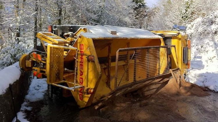 Gritter lorry overturns in Devon